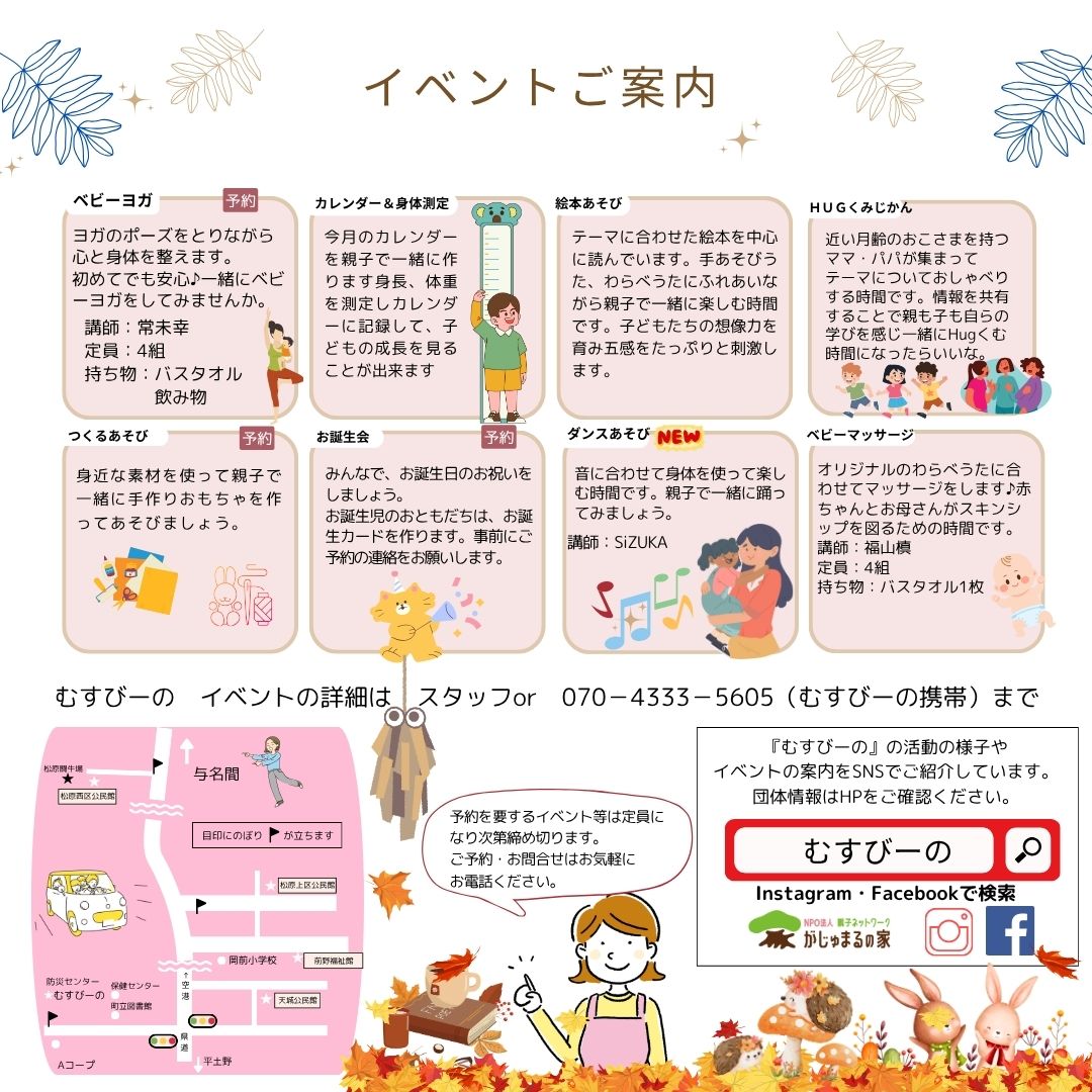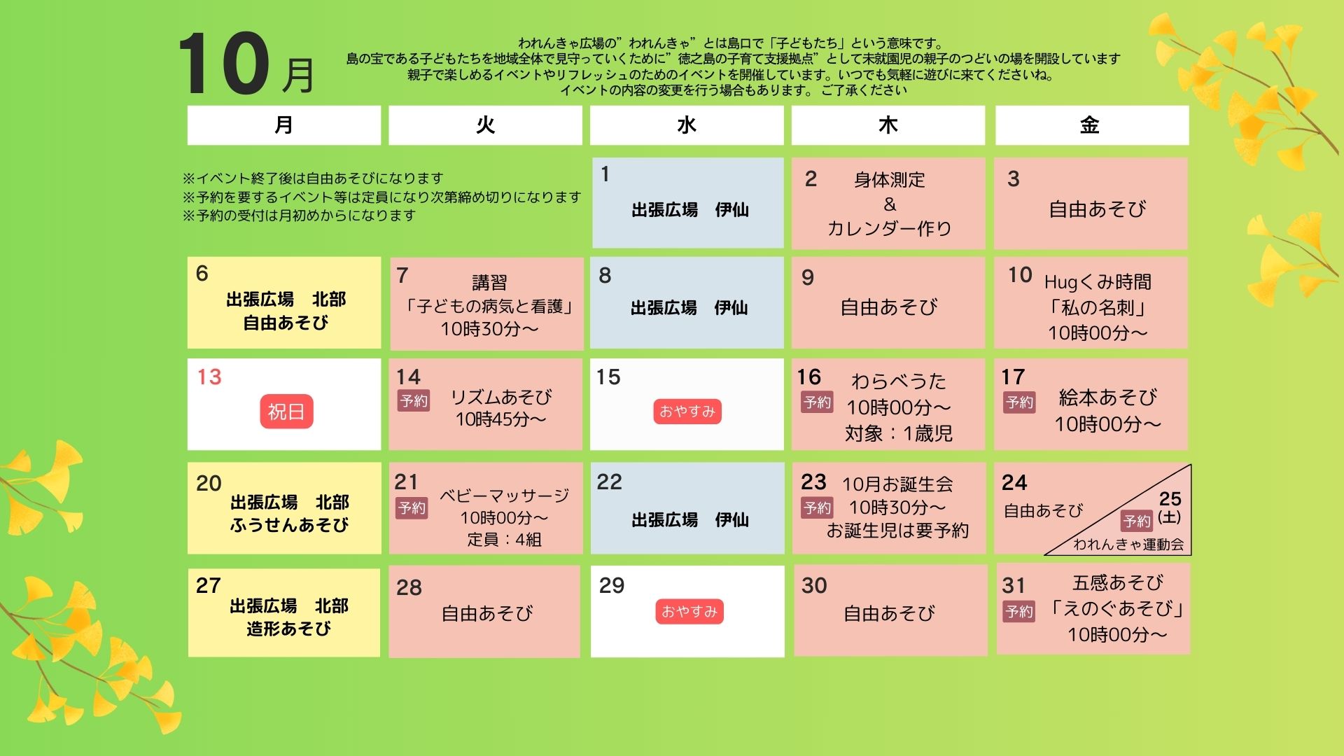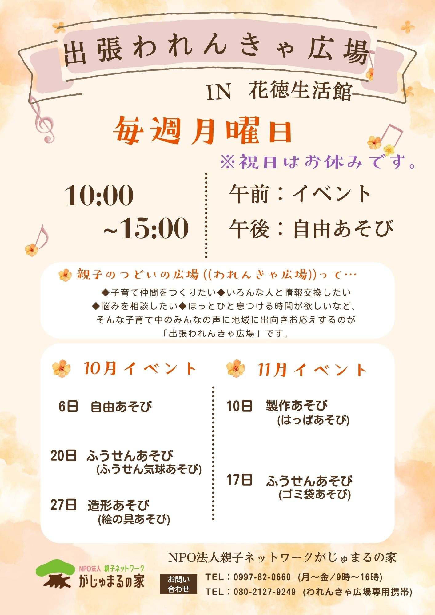 2025年10月 2025 10/02 われんきゃ広場むすびーの伊仙町北部出張広場 イベントのご予約は 8月1日(金)~ 受付いたします。 ご予約はこちら われんきゃ広場 専用電話番号 080-2127-9249(月~金曜日/09:00~16:00) イベントご予約は、8月1日(金)~ 受付いたします ご予約はこちら むすびーの 専用電話番号 070-4333-5605(月~金曜日/09:00~16:00) 2025年9月